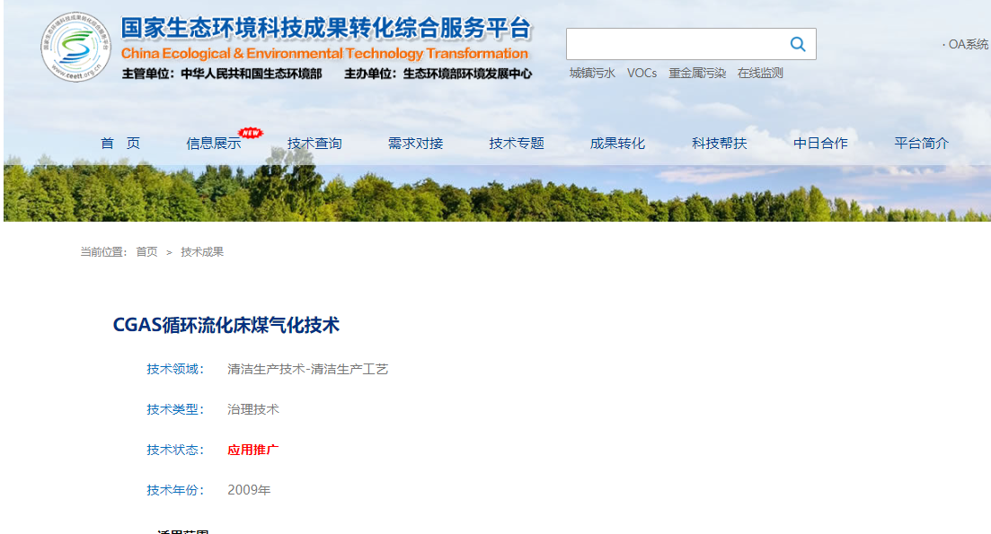 喜訊:中合氣化循環流化床煤氣化爐耦合殘炭處理技術入選安徽省工業領域節能環保“五個一百”先進技術