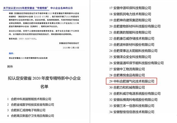 2020 Anhui Provincial "Specialized, Refined and Innovative" SME