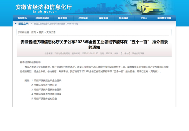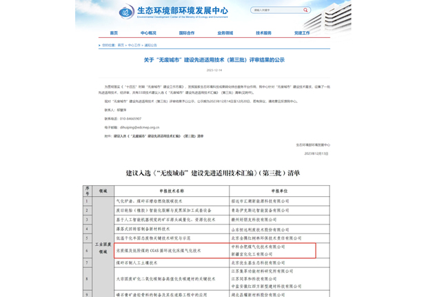 CGAS High-Alkali Coal Gasification listed in Anhui's "Five 100" Energy-saving & Eco-friendly Advanced Technologies in 2023