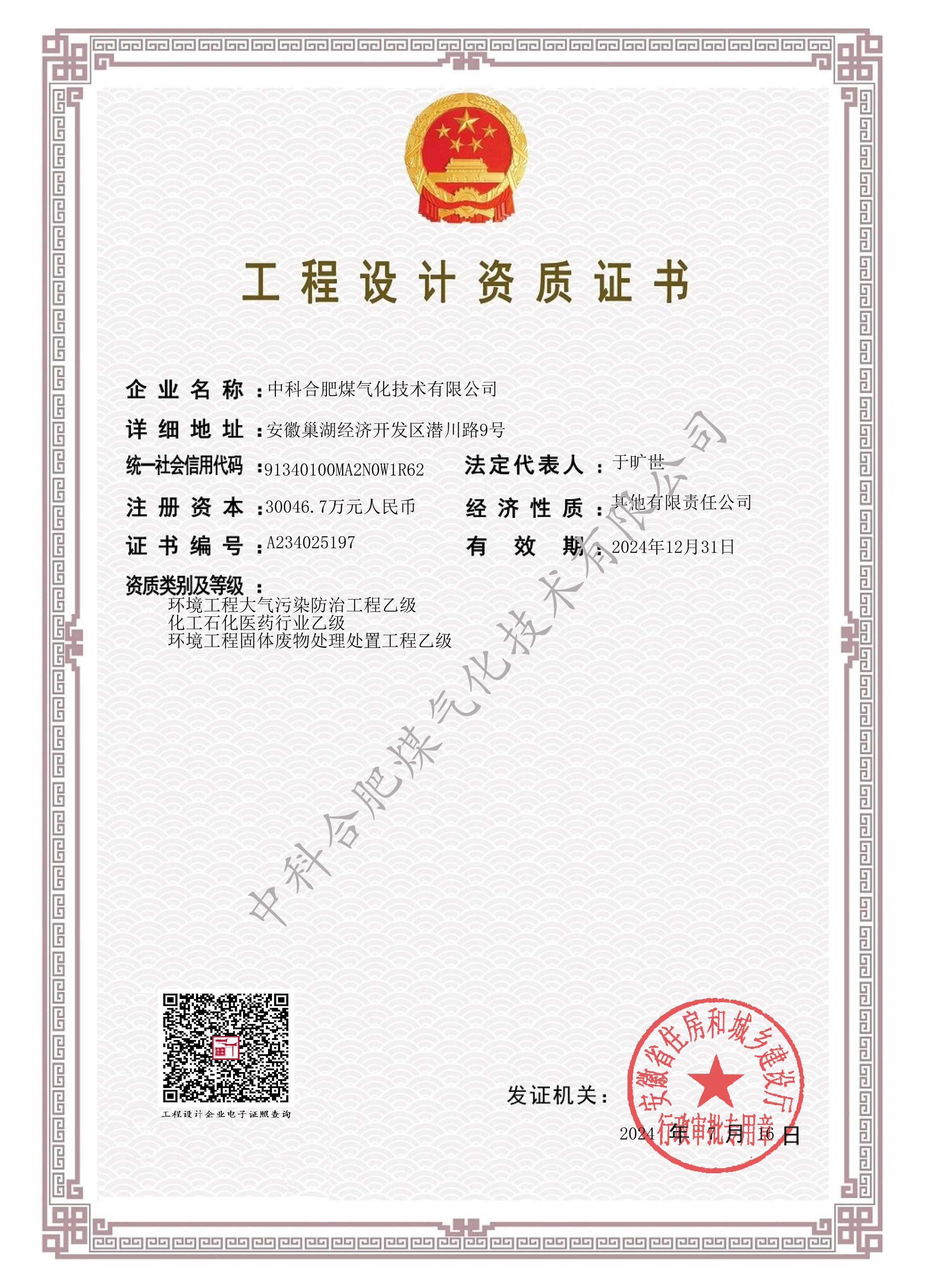Engineering Design Qualifications: Chemical Industry (Class B),Solid Waste Treatment (Class B),Air Pollution Control (Class B)
