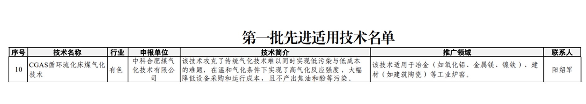CGAS listed in MIIT's First Batch of Advanced Applicable Technologies