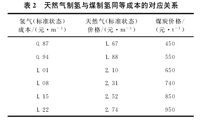 4.4天然氣制氫與煤制氫同等成本的對(duì)應(yīng)關(guān)系