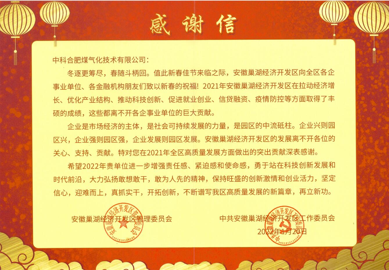1月24日,安徽巢湖經(jīng)開區(qū)召開2021年度總結(jié)表彰大會(huì),中科合肥煤氣化技術(shù)有限公司(以下簡(jiǎn)稱“中合氣化”)榮獲“2021年度科技創(chuàng)新貢獻(xiàn)獎(jiǎng)”,科技實(shí)力與創(chuàng)新能力再獲肯定。